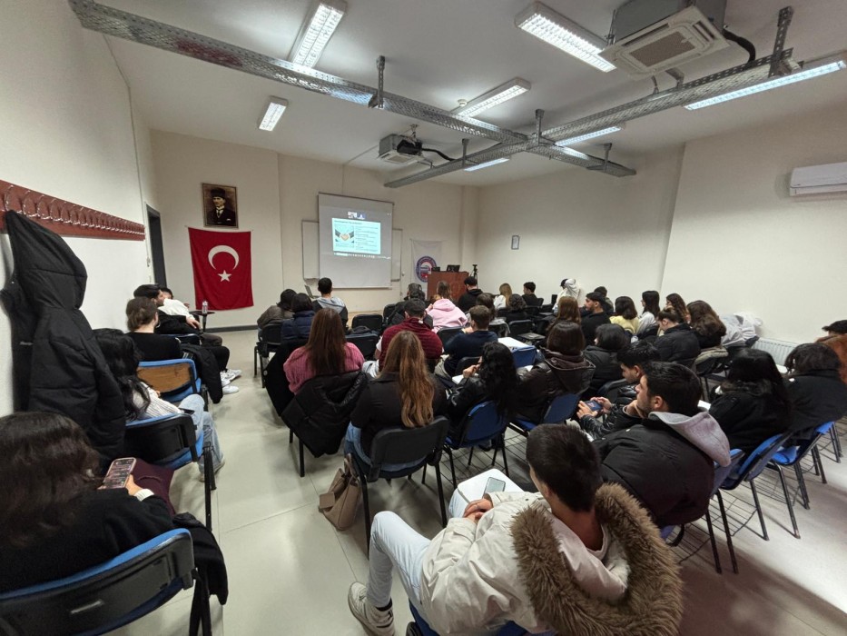 “Dijital Ekonomide Kripto Varlıkların Pazarlanması ve Yönetimi” başlıklı etkinlik, 24.12.2025 tarihinde Dış Ticaret programı öğrencilerimize yönelik olarak, öğrencilerimizin yoğun katılımıyla gerçekleştirilmiştir. Etkinlik kapsamında, Fatih Günaydın, İş Dijital Varlık Teknolojileri Genel Müdürü olarak dijital ekonomide kripto varlıkların pazarlanması, yönetimi ve güncel uygulamalara ilişkin bilgi ve deneyimlerini öğrencilerimizle paylaşmıştır. Değerli katkıları ve paylaşımları dolayısıyla Sayın Fatih Günaydın’a teşekkür ederiz.